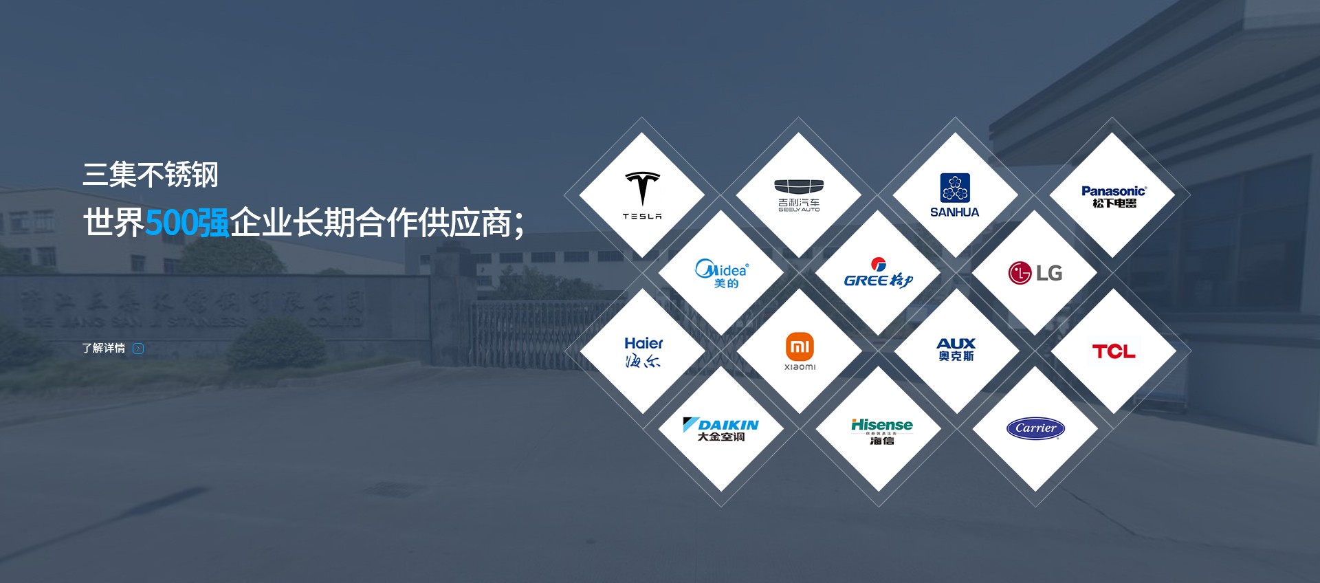 浙江三集不銹鋼有限公司創(chuàng)立于1998年,是一家專(zhuān)業(yè)生產(chǎn)不銹鋼工業(yè)管及各類(lèi)不銹鋼沖壓拉伸件、不銹鋼管路件、制冷配件、地暖用分水器等不銹鋼制品的廠家。公司已成為美的、格力、松下、三花等著名制冷、空調(diào)企業(yè)的合作伙伴。